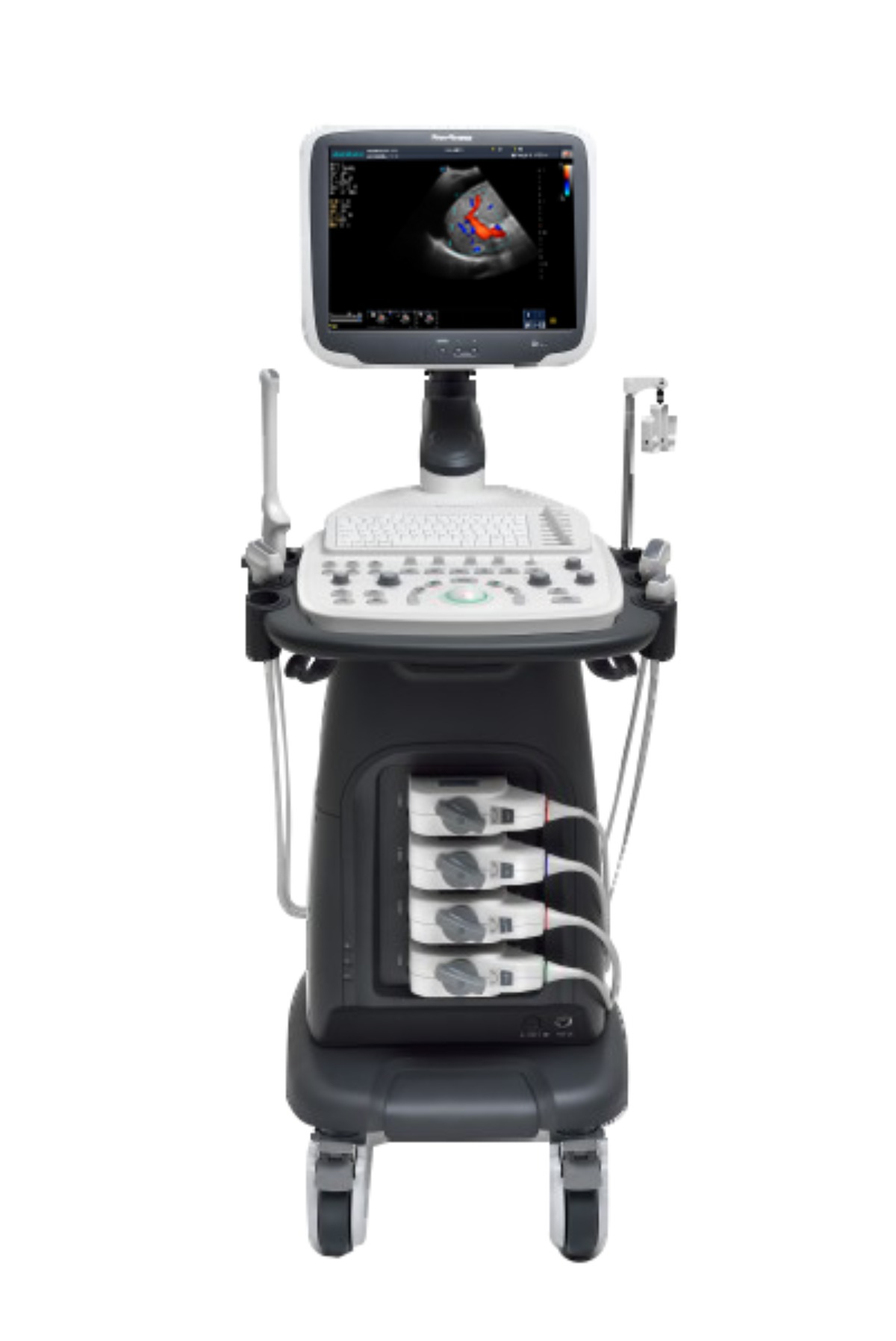 Modos y funciones: El equipo cuenta con múltiples modos de imagen como M, μ-Scan, Doppler color, 3D y 4D, Auto NT, TDI, Auto EF, Auto IMT, Auto Trazado, Vis-Needle para guía de agujas, PW (onda pulsada), imagen trapezoidal e imágenes compuestas. Estas herramientas lo hacen versátil para estudios obstétricos, cardiológicos y musculoesqueléticos.