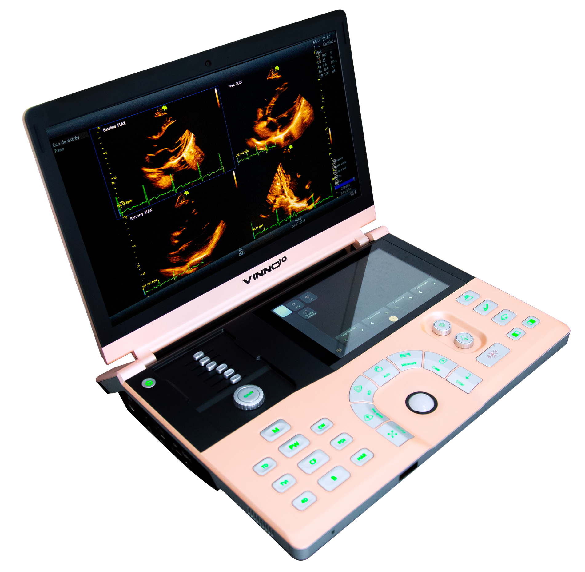 Especificaciones principales: El Vinno 10 es un ultrasonido portátil de última generación que combina diseño italiano elegante, minimalista y funcional con un alto poder de procesamiento capaz de realizar tareas que antes solo eran posibles en equipos de gabinete. Cuenta con pantalla de alta resolución, conectividad WiFi y Bluetooth, interfaz personalizable y compatibilidad con DICOM. Su estructura ligera y ergonómica lo convierte en una solución accesible y portátil para diferentes entornos clínicos.